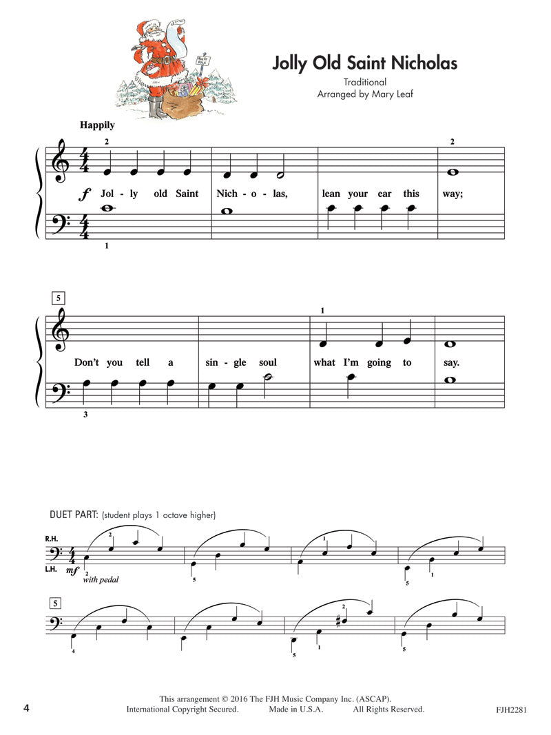 Following the colorful activity pages that reinforce the concepts of Grade 1A, are eight attractive arrangements celebrating the music of the Christmas season. Lyrics are included; some are duets, and some are stand-alone solos.