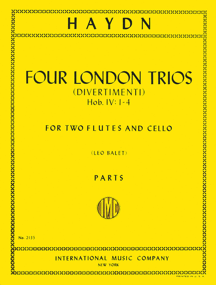 Haydn - Four London Trios (Divertimento) Hob. IV: 1-4 for Two Flutes and Cello (Balet) Parts