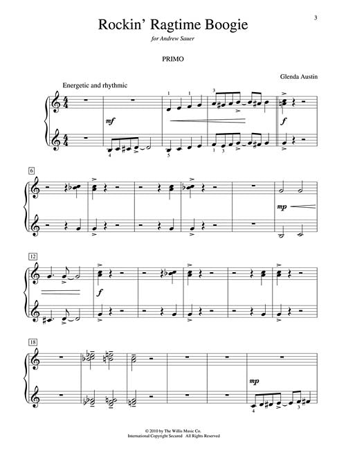 Austin, Glenda - Rockin' Ragtime Boogie - Later Intermediate - Piano Duet Sheet (1 Piano 4 Hands) - Willis Music Dynamic Duets