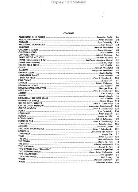50 original piano duets by Stravinsky, Czerny, Schubert, Mozart, Beethoven, Tchaikovsky, Bizet, Brahms and others.