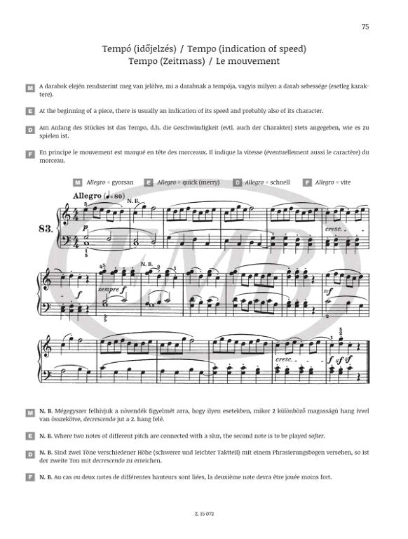 By its very existence it marks the end of lifeless, mechanical piano literature. Not only can these pieces be played with real devotion, since they are so charming, but they themselves can make you develop. They can teach you refined simplicity and sophisticated naivety, and you can do honor to eternal, genuine musicality in them.' Ever since its appearance, many teachers have made successful use of Piano Method by Reschofsky and Bartók in the early years of instrumental music education.