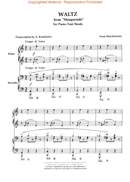 Khachaturian - Waltz from Masquerade - Piano Duet (1 Piano 4 Hands)