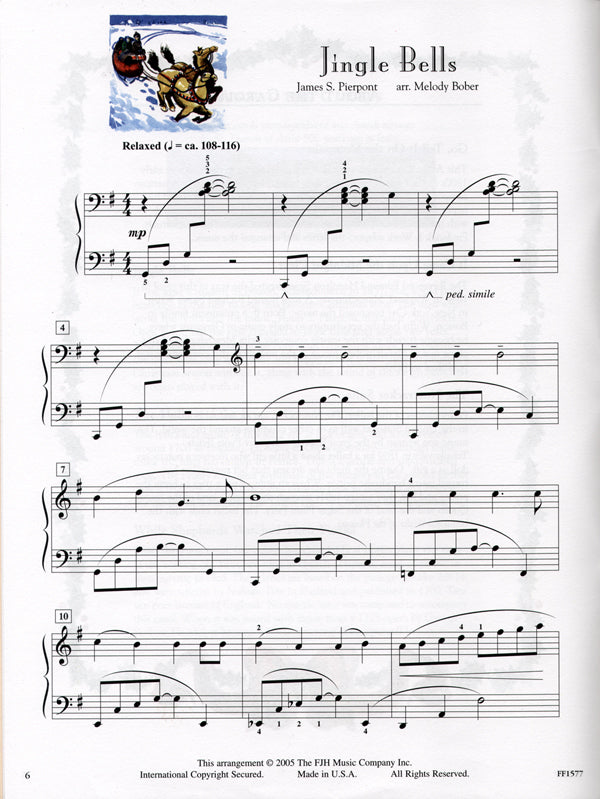 In Recital® with Christmas Favorites, Book Five is designed to help teachers motivate students while also providing a perfect holiday treat. Triplet and sixteenth-note patterns as well as dotted rhythmic patterns and syncopated rhythms are used. Reinforces concepts like rubato, chords and their inversions, octave scale passages, arpeggios, blocked octaves, simple ornamentation, and playing two voices within the same hand.