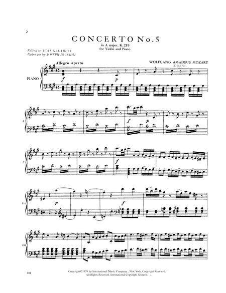 Mozart - Violin Concerto No. 5 in A Major KV 219 - ed. w/Cadenzas by Ivan Galamian - Violin & Piano