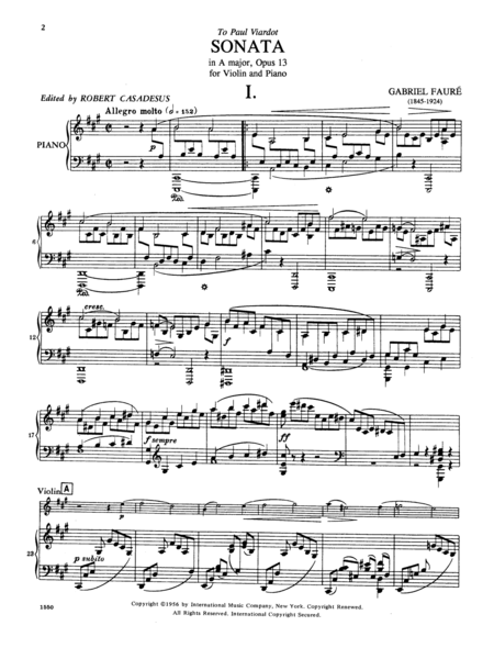 Faure, Gabriel - Sonata No. 1 in A Major, Opus 13 ed. Zino Francescatti & Robert Casadesus - Violin & Piano