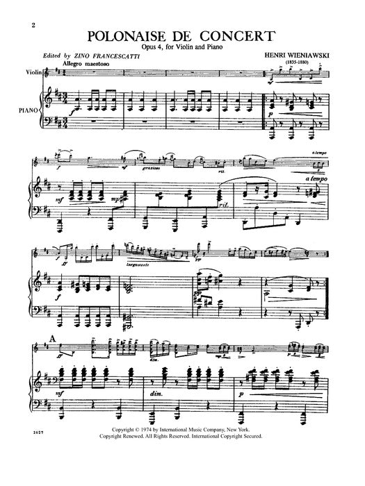 Wieniawski, Henryk -''Polonaise De Concert'', Opus 4 ed. Zino Francescatti - Violin & Piano