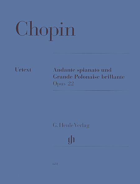 Grande Polonaise Brillante E flat major op. 22 (Piano Solo). Composed by Frederic Chopin (1810-1849). Edited by Ewald Zimmermann. For Piano. Piano (Harpsichord), 2-hands. Henle Music Folios. Urtext edition-paper bound. Romantic Period. SMP Level 10 (Advanced). Single piece. Introductory text, performance notes and fingerings. 36 pages. G. Henle #HN631. Published by G. Henle (HL.51480631).