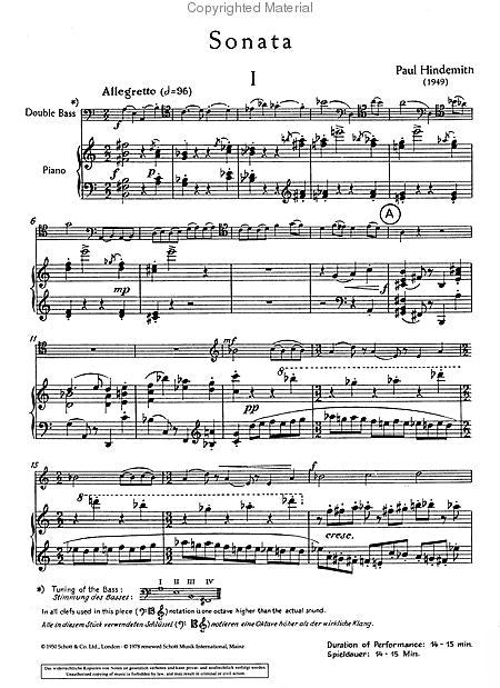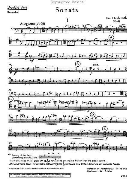 Bass Sonata (1949) (Double Bass and Piano). Composed by Paul Hindemith (1895-1963). For Double Bass, Piano. Kontrabass-Bibliothek (Double Bass Library). 27 pages. Schott Music #KBB9. Published by Schott Music (HL.49011035).