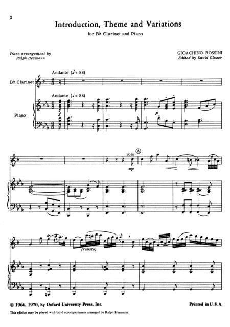 Introduction, Theme, and Variations - Rossini, Gioachino (ed. David Glazer) - Reduction for Clarinet and Piano (Ralph Hermann)