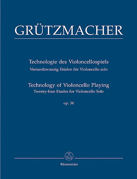 Technology of Violoncello Playing, Op. 38 (Twenty-four Etudes for Violoncello Solo). Composed by Friedrich Grutzmacher (1832-1903). Edited by Martin Rummel. For cello. This edition: 1st printing 2006 edition. Paperback. Performance score. Opus 38. 77/24 pages. Published by Baerenreiter Verlag (BA.BA6997).